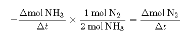 The stoichiometric factors derived from this equation may be used to relate reaction rates in the same manner that they are used to related reactant and product amounts. The relation between the reaction rates expressed in terms of nitrogen production and ammonia consumption, for example, is:
