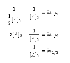 For a second-order reaction, is inversely proportional to the concentration of the reactant, and the half-life increases as the reaction proceeds because the concentration of reactant decreases. Consequently, we find the use of the half-life concept to be more complex for second-order reactions than for first-order reactions. Unlike with first-order reactions, the rate constant of a second-order reaction cannot be calculated directly from the half-life unless the initial concentration is known.