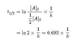We can derive an equation for determining the half-life of a first-order reaction from the alternate form of the integrated rate law as follows: