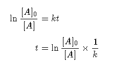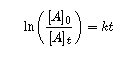 An equation relating the rate constant to the initial concentration and the concentration present after any given time can be derived for a first-order reaction and shown to be: