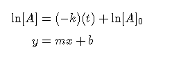 A plot of versus for a first-order reaction is a straight line with a slope of and an intercept of . If a set of rate data are plotted in this fashion but do not result in a straight line, the reaction is not first order in .