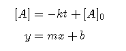 | integrated rate law | [A] = −kt + [A]0 | ln[A] = −kt + ln[A]0 | |