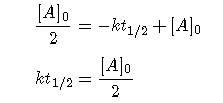 If we set the time t equal to the half-life, , the corresponding concentration of A at this time is equal to one-half of its initial concentration. Hence, when , .