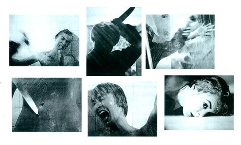 “浴室谋杀”这场戏共计4分钟。从玛丽安在卧室里写算式到诺曼的“母亲”跑回房屋,导演用了60多个镜头。如果从诺曼“母亲”出现的那个镜头算起,只有1分40秒,共44个镜头。其中:玛丽莲的近景4个,头与脸部特写15个,嘴部特写1个,腿部特写3个,刀子特写2个,举刀砍杀近景3个,水喷头镜头1个,从镜头比例上来看,玛丽安的镜头最多。从景别大小来看,完全由近景和特写组成。因此镜头长度非常短,平均每个镜头只有1秒多一点,有的镜头不到1秒,只有几格。所以速度快、节奏高,冲击力大,造成了凶杀场面的恐怖感和刺激性,给人留下了深刻的印象。这是段行云流水般的蒙太奇,达到了让观众产生了双重错觉的效果。