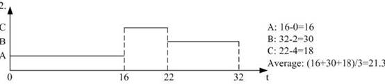 · 2.The scheduling order of SJF algorithm: A→C→B, so