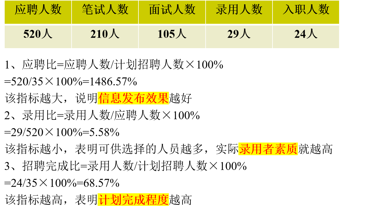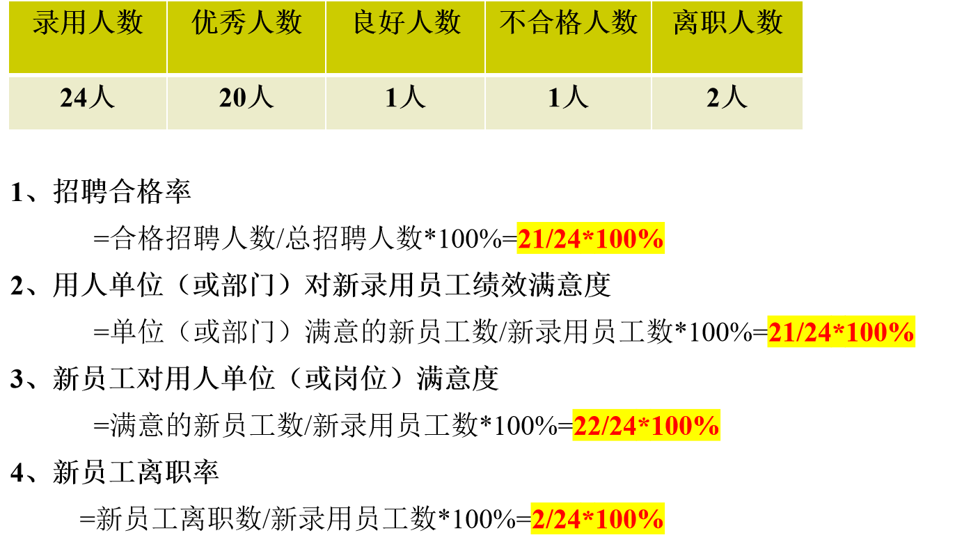 掌握人员招聘评估中的数量和质量评估指标计算。