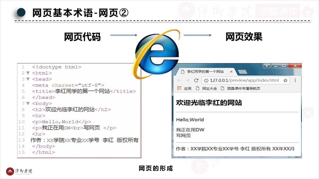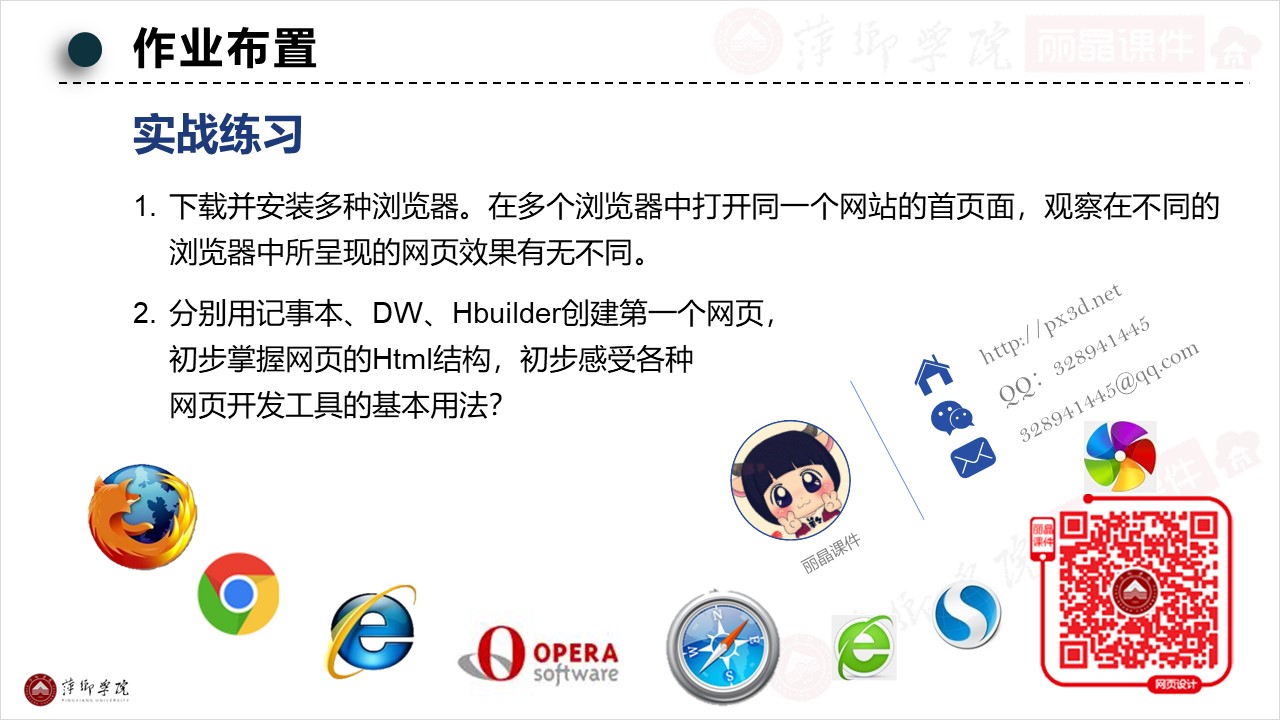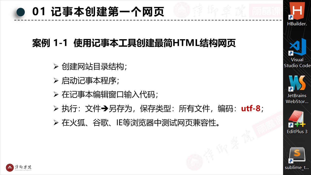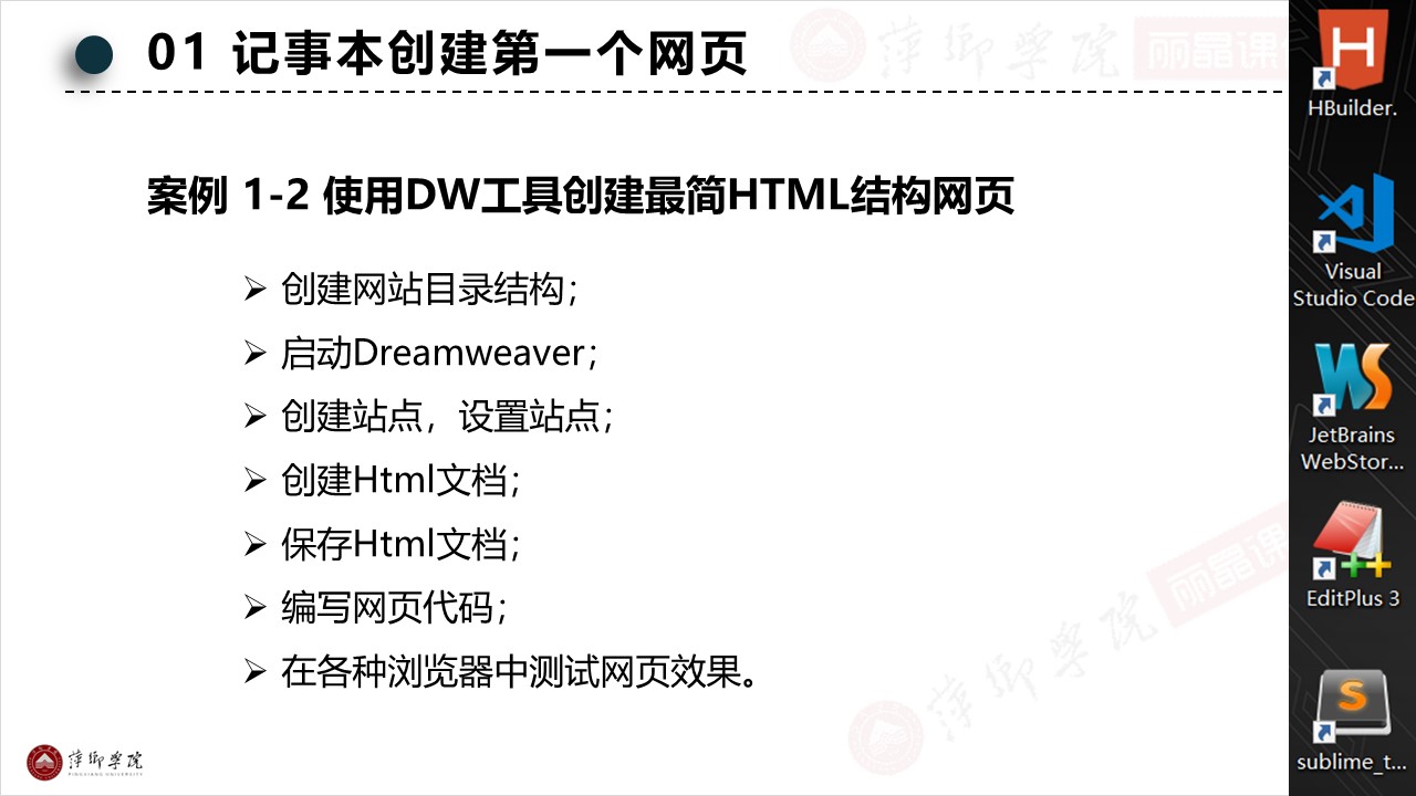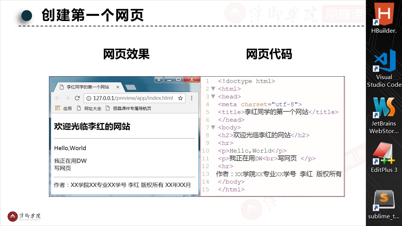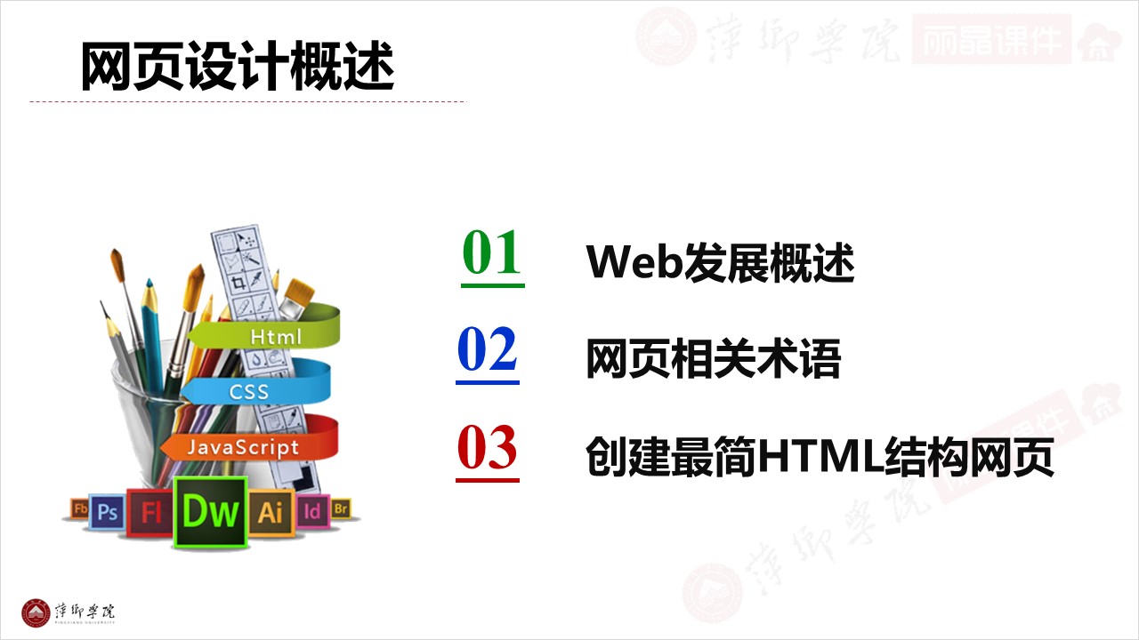 同学们好,这节课我们将学习Web发展简史,以及HTML、CSS、URL、IP地址、域名地址等网页相关的重要术语,初步认识网页基本结构及各种浏览器和网页开发工具,并且要学会使用记事本创建第一个简单网页。本节重点是理解网页相关术语意义掌握网页基本结构。准备好了吗?我们开讲了!