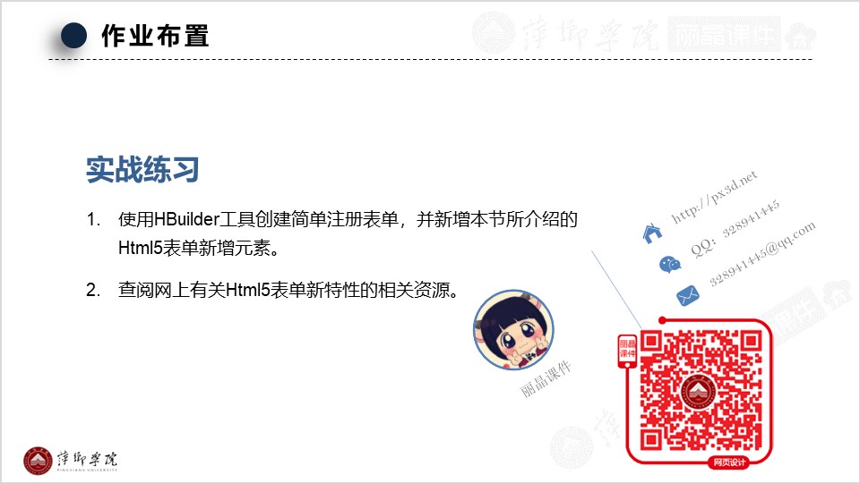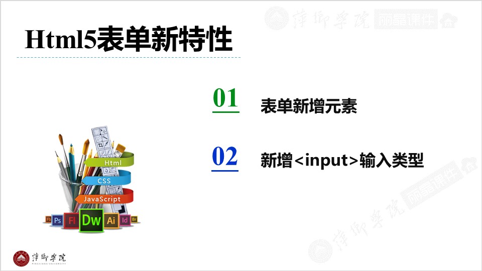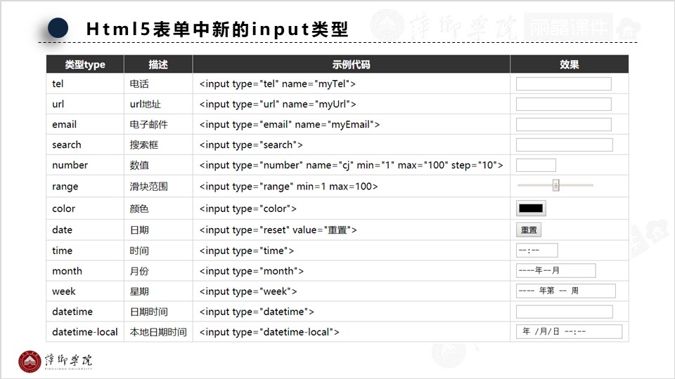 同学们好,上一节我们介绍了HTML5表单中新增的一些比较常用的属性,这些新增的属性使HTML5的表单更加灵活,用户体验度也更好,同样,HTML5还新增了一些表单元素,尤其是表单中最重要的input的控件,新增了多种输入类型,让HTML5的表单更加好用,增强了其语义化和用户的体验度。准备好了吗,我们开讲了!