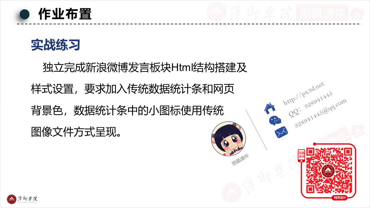 同学们好,这节课我们继续进行网页布局实战练习,我们将在上一节搭建的仿新浪微博发言版块布局案例的Html结构的基础上,对发言版块进行CSS样式设置。准备好了吗,我们开讲了!