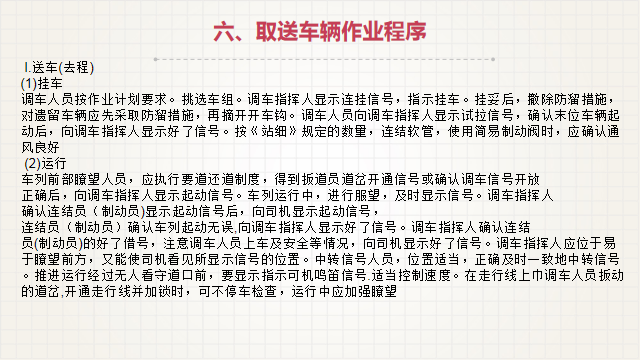 的车辆,机车与编挂的车辆应连接制动软管,接制动软管的车数与所牵车数的比例不少于 1:5,即 5 辆车内至少有 1 辆接制动软管。