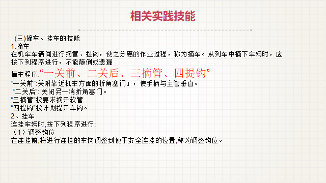 7.3 第三课时 调车技能四(排风、摘管,选闸、试闸,铁鞋)