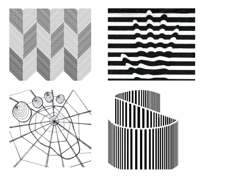 (2)将线条按不同距离进行疏密排列,产生透视空间的视觉效果。