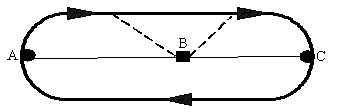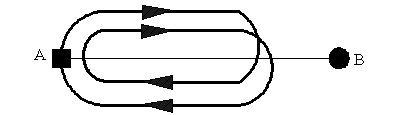 (4)环形运转制交路。机车在一个区段或枢纽内担当两个及以上往返的列车牵引任务之后,才入段进行整备作业,机车不需要转向,如图3-2-5所示。这种交路适用于担当市郊列车和小运转列车的牵引任务。