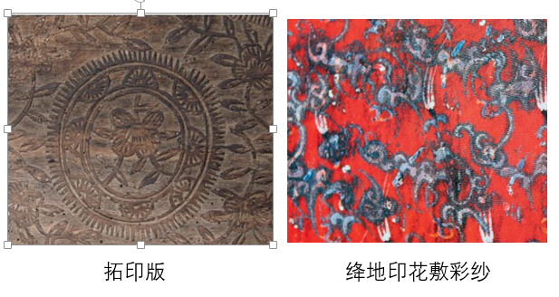 我国古代手工印染工艺种类很多,典型代表的有手绘、扎染、蜡染、夹染、蓝印花布、凸版印花以及各种型染工艺等。除直接的手绘外,扎染、蜡染、夹染、蓝印花布为防染印花工艺,凸版印花为直接印花。