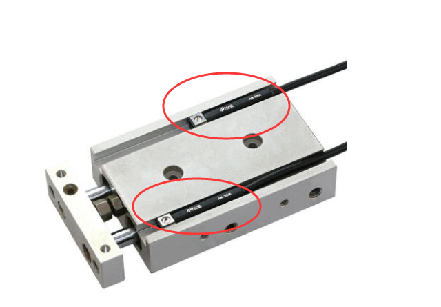 气缸用传感器的一个专用称呼,主要应用于检测气缸活塞位置。通常,都由气缸供应商根据客户使用情况配套提供。顾名思义,磁性开关是通过电磁感应来检测目标物,所以,其检测精度相当低。下图画红圈的就是气缸中用的磁性传感器。