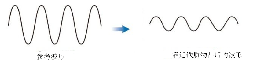 当不含铁的金属(比如:铝、铜等)靠近感应式接近开关时,它们不吸收高频磁场的能量。相反,这类金属还能使接近开关内部振荡电路的频率增大。内部的检测电路同样能检测到这种变化,从而改变输出状态,将接近开关的信号值从0变为1。振荡电路的波形在接触不含铁金属前后可以参下面这张图:
