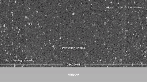 CLIP从底部投影,使光敏树脂固化,不需要固化的部分通过控制氧气,形成死区,抑制光固化反应而保持稳定的液态区域,这样就保证了固化的连续性。