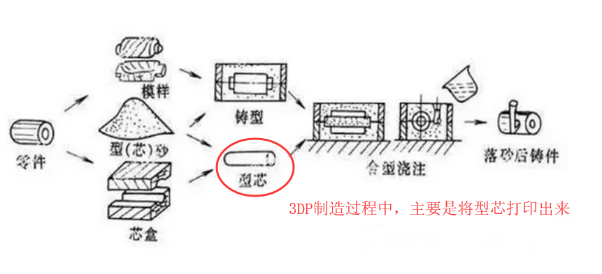 3DP即三维打印快速成型技术,其与传统二维喷墨打印接近,从喷头喷出粘结剂(彩色粘结剂可以打印出彩色制件),将平台上的粉末粘结成型,通常用采用石膏粉作为成型材料。3DP技术目前主要应用有两个:全彩3D打印及砂模铸造。 以下是Exone公司用3DP技术进行砂模铸造的过程。