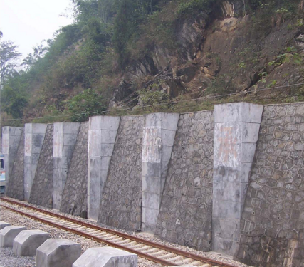由肋柱、面板、锚杆组成,靠锚杆拉力组成的挡土结构称为锚杆挡土墙。锚杆是一种新型的受拉构件,它的一端与工程结构物联结,另一端锚固在稳定的地层中,以承受土压力对结构物所施加的推力,从而利用锚杆与地层间的锚固力来维持结构物的稳定。