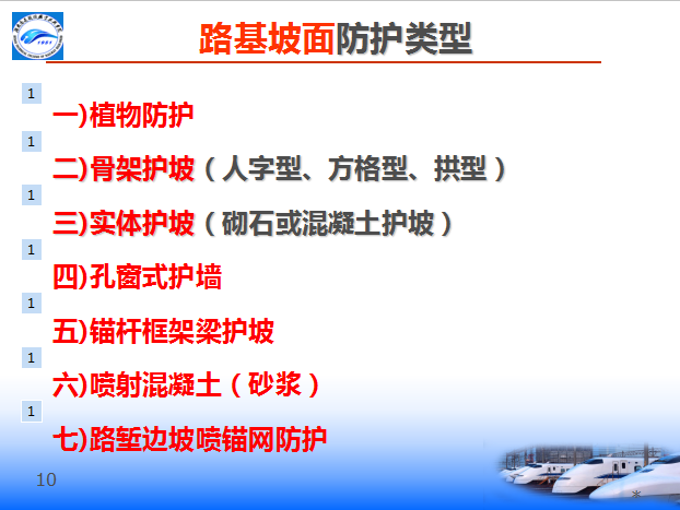 路基防护分坡面防护和冲刷防护两种。