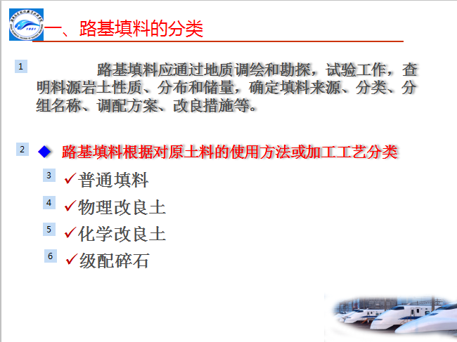 1、路基填料根据对原土料的使用方法或加工工艺分类