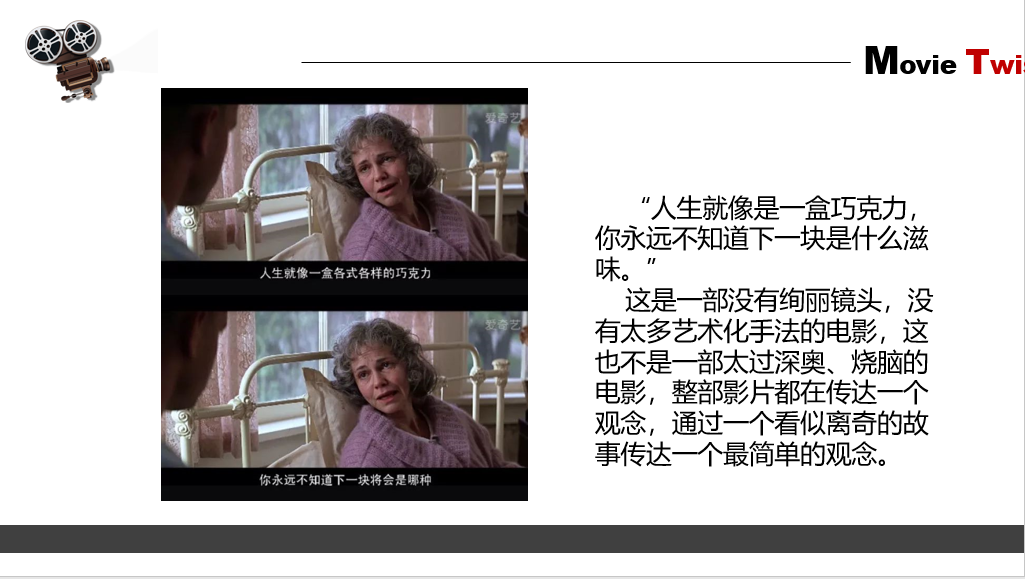 “人生就像是一盒巧克力,你永远不知道下一块是什么滋味。”