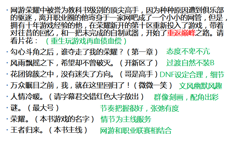 《全职高手》简介:黑字为作者原文,绿字为点评