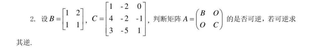 2)对角线分块矩阵的运算、可逆的条件及逆矩阵的求法。