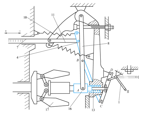 1—控制杠杆 4—浮动杠杆 7—供油调节齿杆 8—导动杠杆