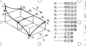 图中s代表刺激系列,箭头表示刺激从完全相同到无关的相似性的变化; R代表反应系列,箭头表示从反应完全相同到无关以至相反和对抗的变化。从加号(+)到减号(一)表明迁移的情况由正到零到负。以粗线勾画的面则表示迁移发生的方向与数量,即迁移的逆向曲面。