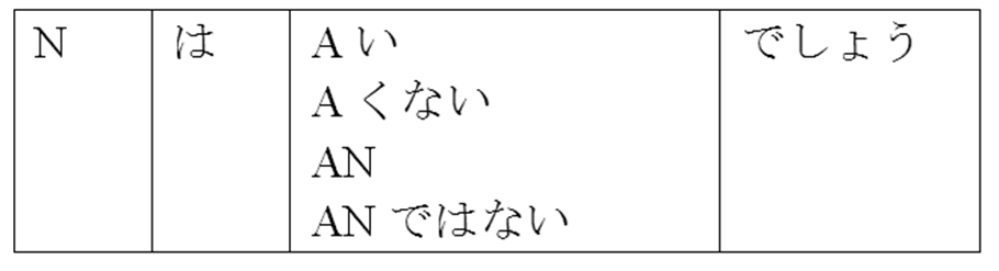 4.~でしょう “でしょう”是“です”的推测表达方式,表示说话人不确定的推测和判断。意为“……吧”。前接形容词和形容动词时的接续方法如下: