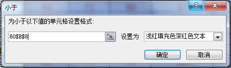 (2)在“小于”对话框中,在文本框中输入“60”,在“设置为”列表框中选择“浅红填充色深红色文本”,单击【确定】按钮。