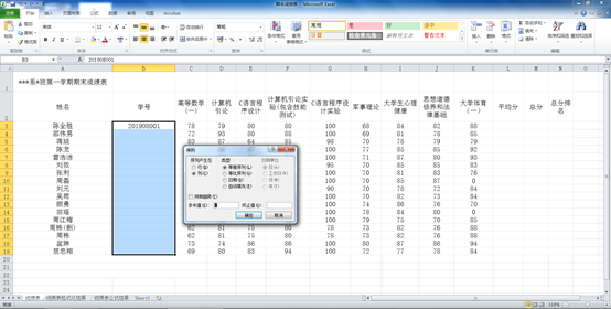 操作要求:在 A3~A18 单元格区域,通过序列填充输入学号“201908001”~“201908016。”