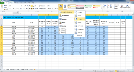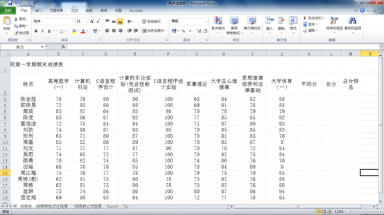 操作要求:将 A1 单元格的内容改为“计算机系1 班第一学期期末成绩表”。