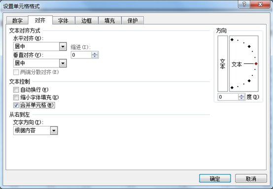 ②单击【开始】 | 【对齐方式】选项组旁边的箭头 ,打开“设置单元格格式”对话框,如图 3‑15所示,在“对齐”选项卡中“水平对齐”的下拉列表中选择“居中”,再选中“合并单元格”复选框,单击【确定】按钮。