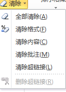 注意:删除与清除内容。如果是删除单元格,则使单元格本身从工作表中消失,空出的位置由周 围的单元格来补充。而选中单元格后按【Delete】键,只能将单元格的内容清除,空白单元格 仍保留在工作表中。此外,选中单元格,单击【开始】丨【编辑】选项组的【清除】命后的下拉按钮,如图 3‑5所示,可在其下拉菜单中选择清除单元格的全部或格式、内容、批注。