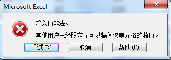 如果将 C3~K18 的任意一个单元格中的数据改为一个小于 0 或大于 100 的数,试图离开该单元格时,系统会打开一个警告对话框,如图 3-14 所示。如果选择【重试】,则该单元格仍为活动单元格,要求用户输入正确的数据;如果选择【取消】,则取消用户对数据的修改。
