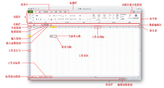 启动 Excel 2010 后,窗口如图 3‑2所示