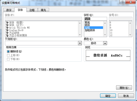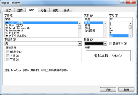 图3‑16“设置单元格格式”对话框的“字体”选项