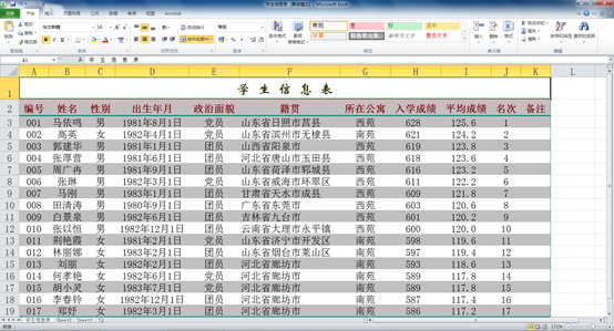 现有图 3-23 所示的素材文件“学生信息表.xlsx”工作簿,需要为单元格设置文本格式、边框和底纹,具体要求如下。