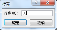 ①在第一行的行标上单击鼠标右键,选择快捷菜单中的【行高】命令,打开“行高”对话框,如图 3-17 所示,在“行高”文本框中输入“30。”