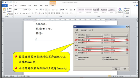 i. 选中线条,单击【格式】|【排列】|【位置】选项,弹出下拉菜单。在其弹出的菜单中,单击“其它布局选项”命令,弹出“布局”对话框。在“布局”对话框的“位置”选项卡上,设置分隔线的水平位置和垂直位置。