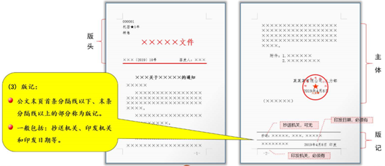 《标准》将版心内的公文格式各要素划分为版头、主体、版记三部分。