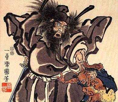 这大鬼向玄宗施礼道:“臣是终南山的钟馗。高祖武德年间,因赴长安应武举不第,羞归故里,触殿前阶石而死。幸蒙高祖赐绿袍葬臣,臣感德不尽,遂誓替大唐除尽天下虚耗妖魅!”其声如洪钟贯耳,一下子把唐玄宗吓醒了。摸摸身上,竟出了一体冷汗,疟疾霍然而愈。玄宗觉得太神奇了,忙把宫中名画家吴道子召到宫内,将梦告诉他,要他如梦中所见画一幅图。吴道子奉旨,仿佛亲睹般,下笔就画成了,呈给玄宗看后,玄宗瞠目结舌了半响,感叹道:“难道你也和联做一样的梦吗?怎么画得这样像!”
