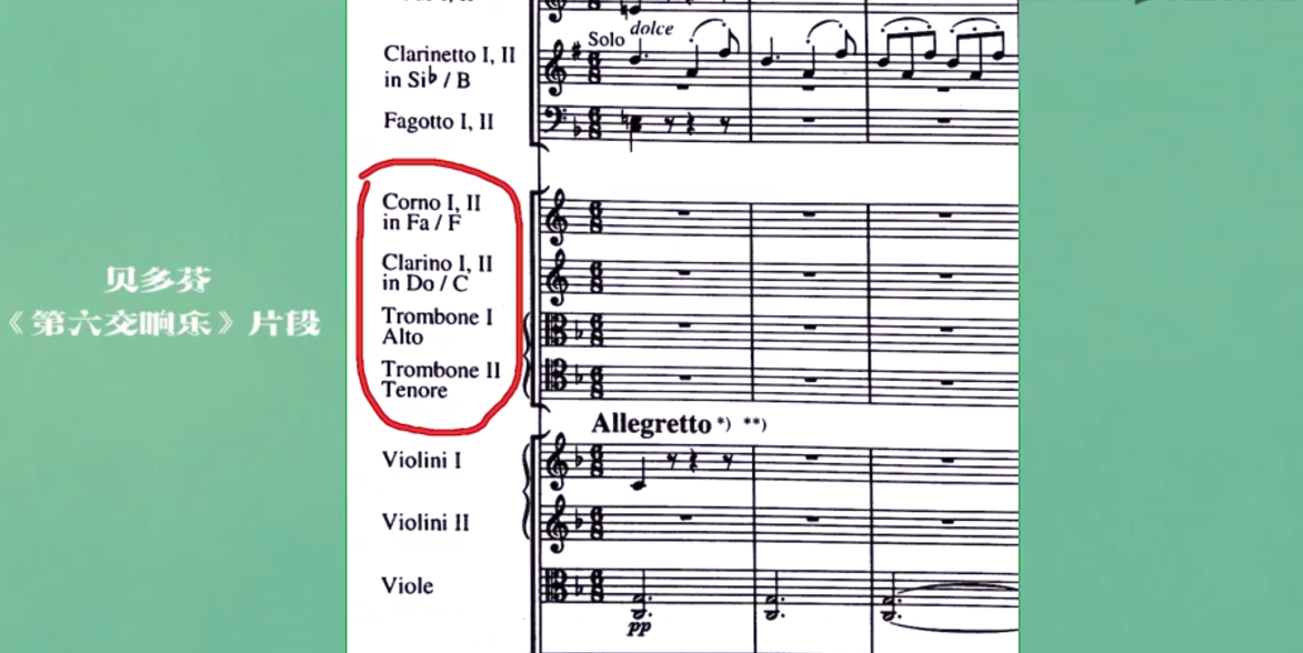 交响乐总谱的乐器名称经常会用意大利文,法文、德文、英文标注,所以大家一定要去查阅其名称的对照表。