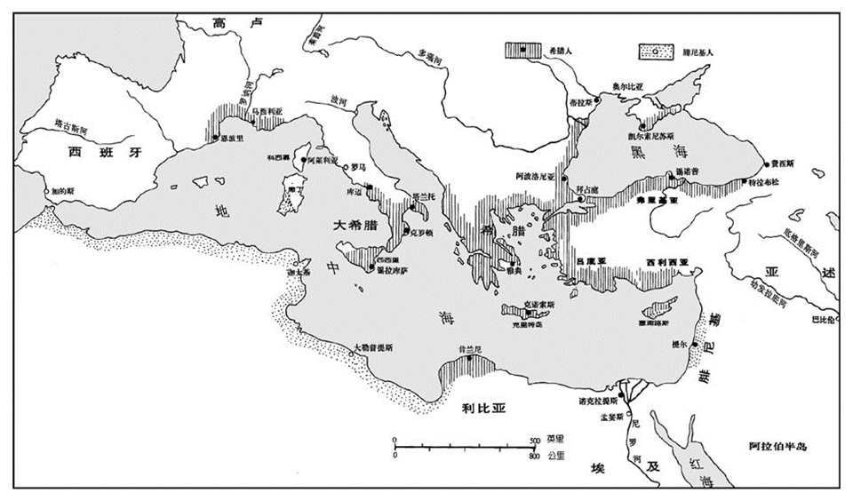 古希腊位于欧洲南部,地中海的东北部,包括巴尔干半岛南部、小亚细亚半岛西岸和爱琴海中的许多小岛。古希腊临靠大海,便于对外交流。古希腊拥有高度发达的航海业,频繁的对外交流和战争,使得希腊人对外来文化吸收融汇,并将本土文化传播出去。