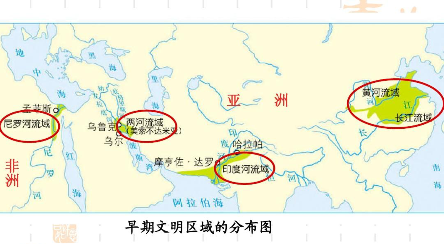 这张地图是一张早期文明区域的分布图,从这张图里我们可以看到,世界四大文明古国分别是:古埃及,古巴比伦,古印度,和中国。