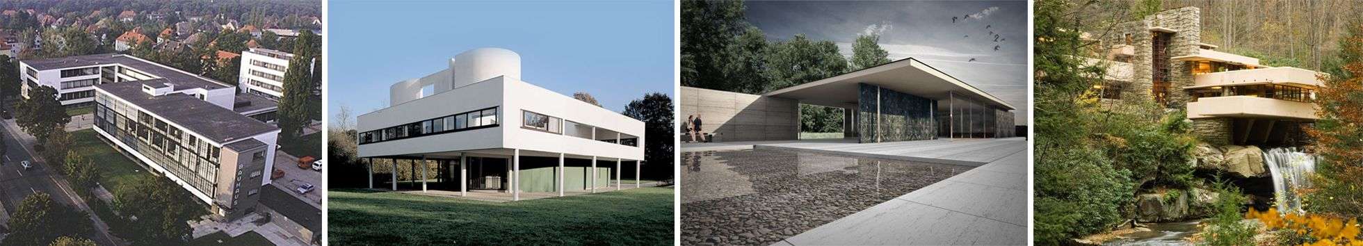 代表建筑:包豪斯校舍、萨伏伊别墅、巴塞罗那德国馆、流水别墅