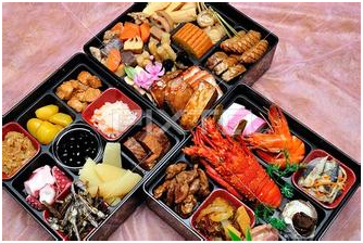またおせち料理につめられる料理にはひとつひとつそれぞれ意味が込められている。たとえば、黒豆:一年中「まめ(まじめ)」に働き「まめ(健康的)」に暮らせるようにと願いが込められている。数の子はたくさんの卵があるということから、子孫繁栄の願いもこめられている。このようにおせち料理にはすべて意味がある。