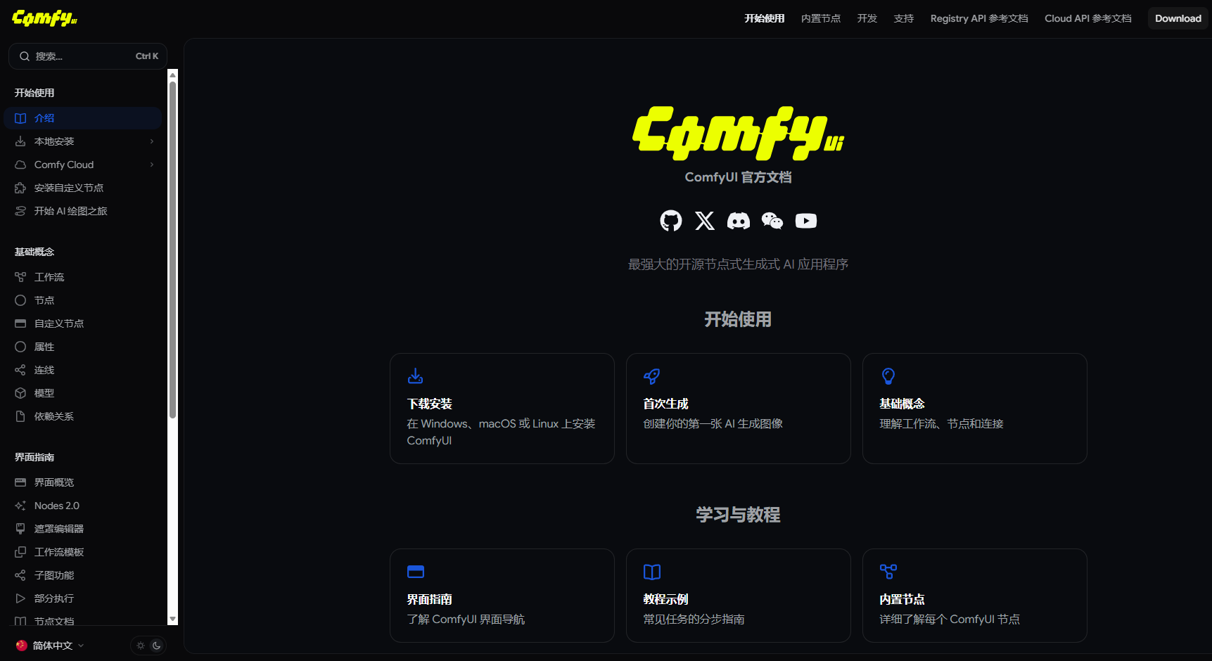 访问网址:ComfyUI 官方文档 - ComfyUI